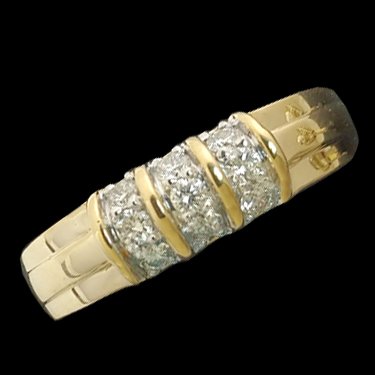 : Article Description :One Ring weighing in total 4.97 gms, studded with 09 psc of Diamonds.![]()
