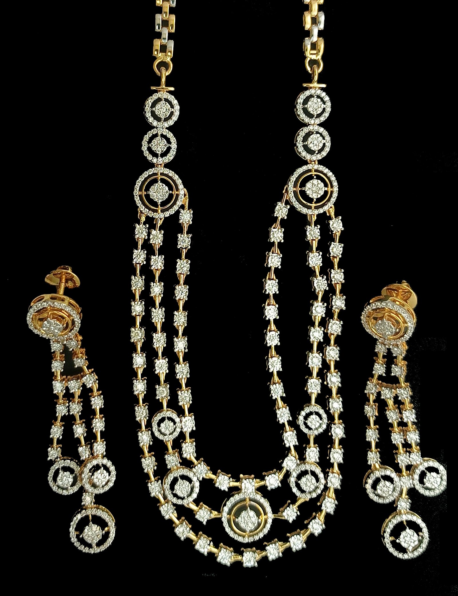 : Article Description :One Necklace Set weighing in total 55.30 gms, studded with 619 Pcs Diamonds.![]()