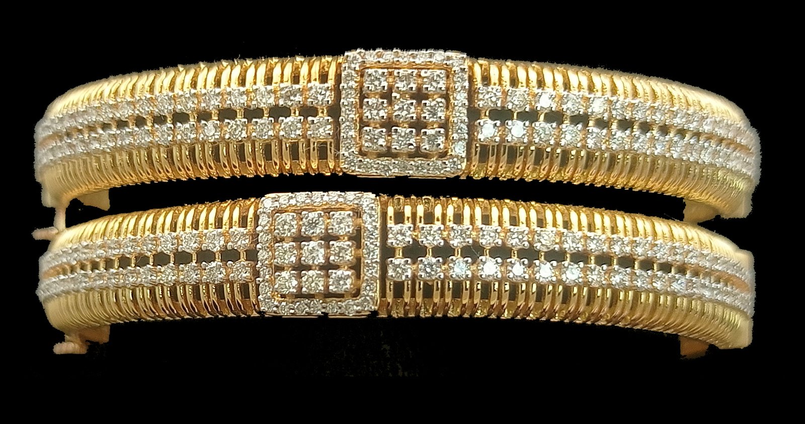 One pair Bangles weighing in total 48.55 gms, studded with 454 Pcs of Diamonds.