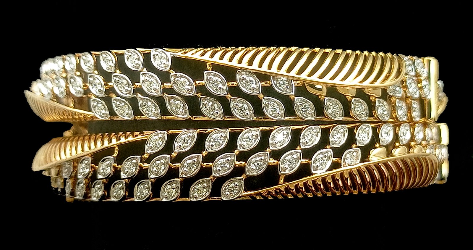 One pair Bangles weighing in total 47.97 gms, studded with 194 Pcs of Diamonds.
