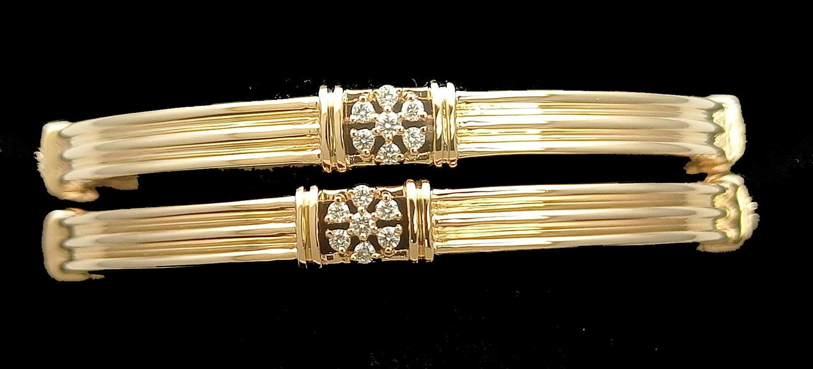 : Article Description :One pair Bangles weighing in total 33.12 gms, studded with 56 Pcs of Diamonds.![]()