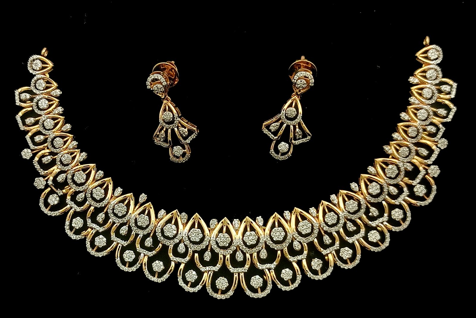: Article Description :One Necklace Set weighing in total 24.25 gms, studded with 874 Pcs Diamonds.![]()