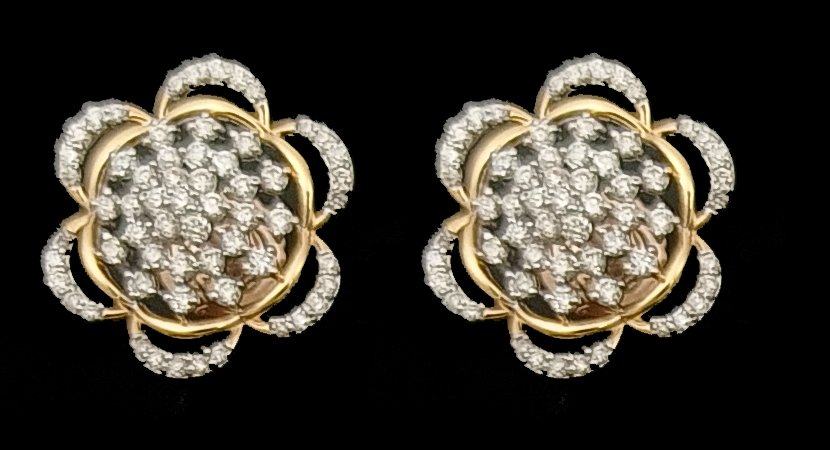 : Article Description :One pair Earring weighing in total 4.54 gms, studded with 122 Pcs Diamonds.![]()