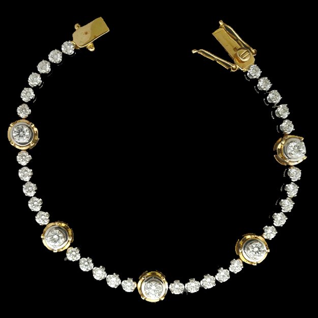 : Article Description :One Bracelet weighing in total 13.54 gms, studded with 36 pcs Diamonds.![]()