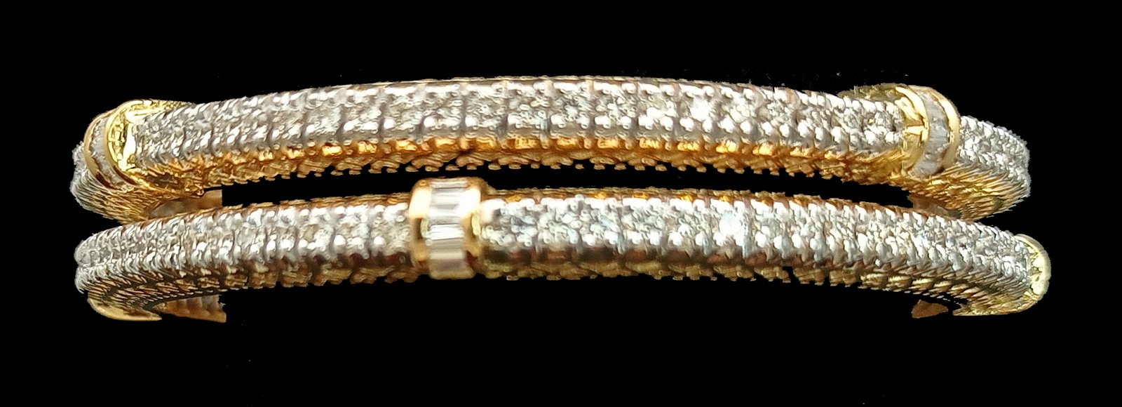 One pair Bangles weighing in total 43.86 gms, studded with 206 Diamonds.