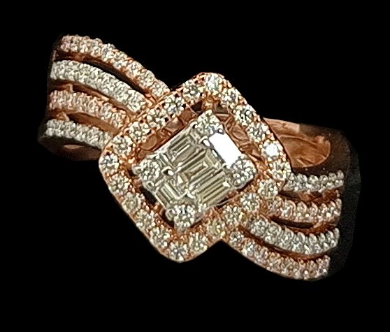 : Article Description :One Ring weighing in total 5.50 gms, studded with 91 Pcs of Diamonds.![]()