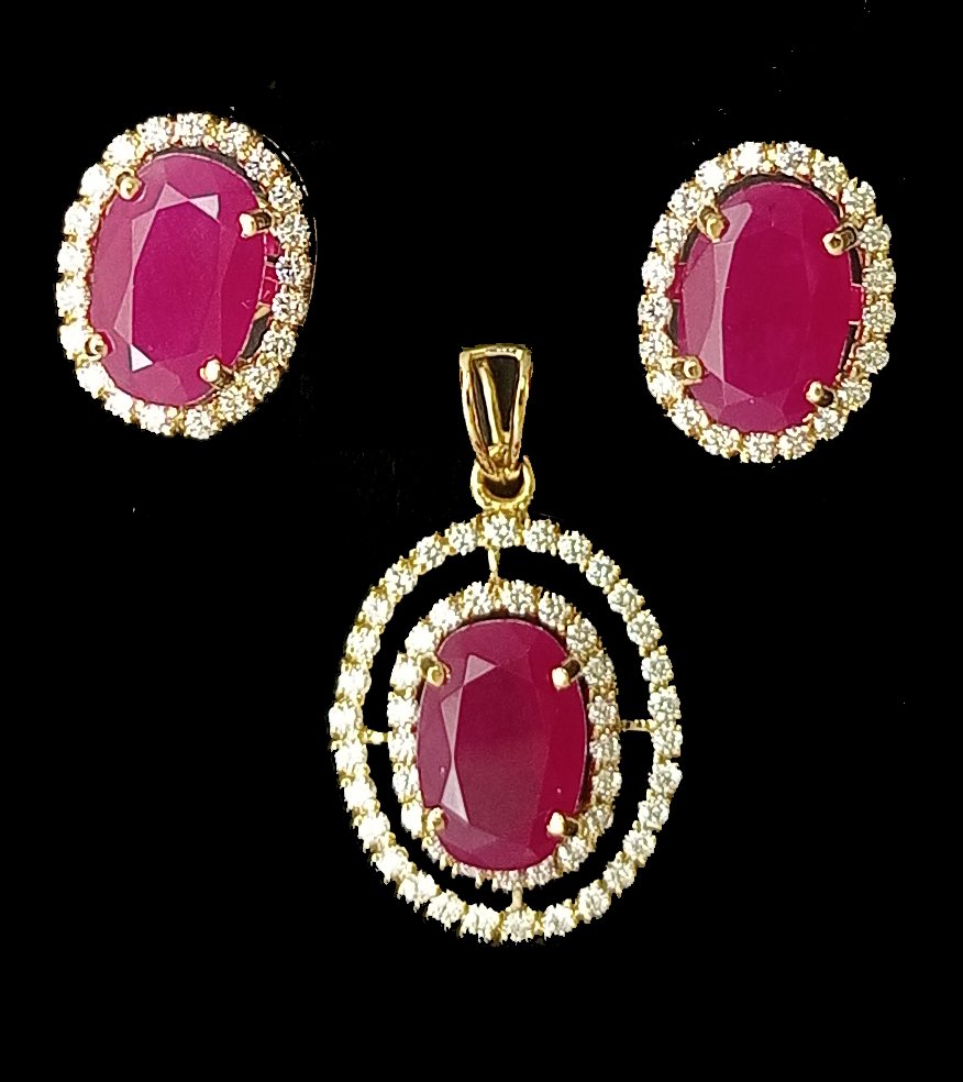 : Article Description :One Pendent Set weighing in total 11.29 gms, studded with 93 Pcs of Diamonds.![]()