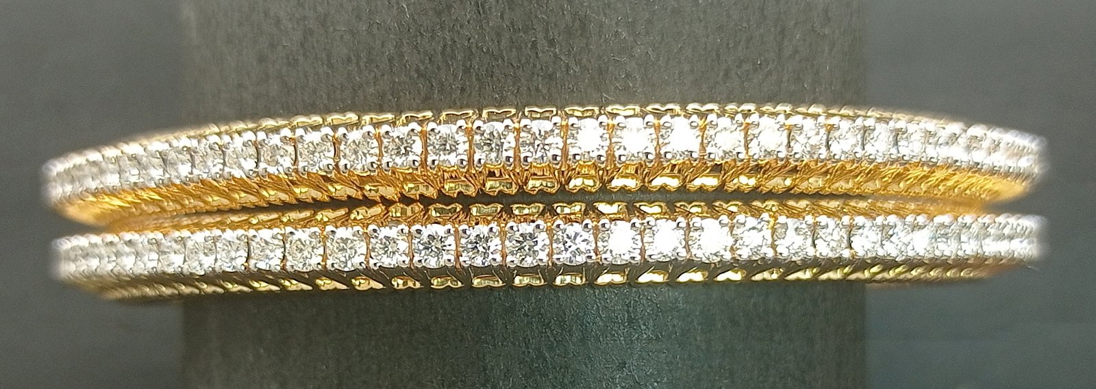 : Article Description :One pair Bangles weighing in total 36.64 gms, studded with 172 Pcs of Diamonds.![]()