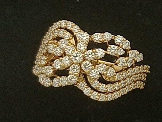: Article Description :One Ring weighing in total 4.26 gms, studded with 99 Pcs of Diamonds.![]()