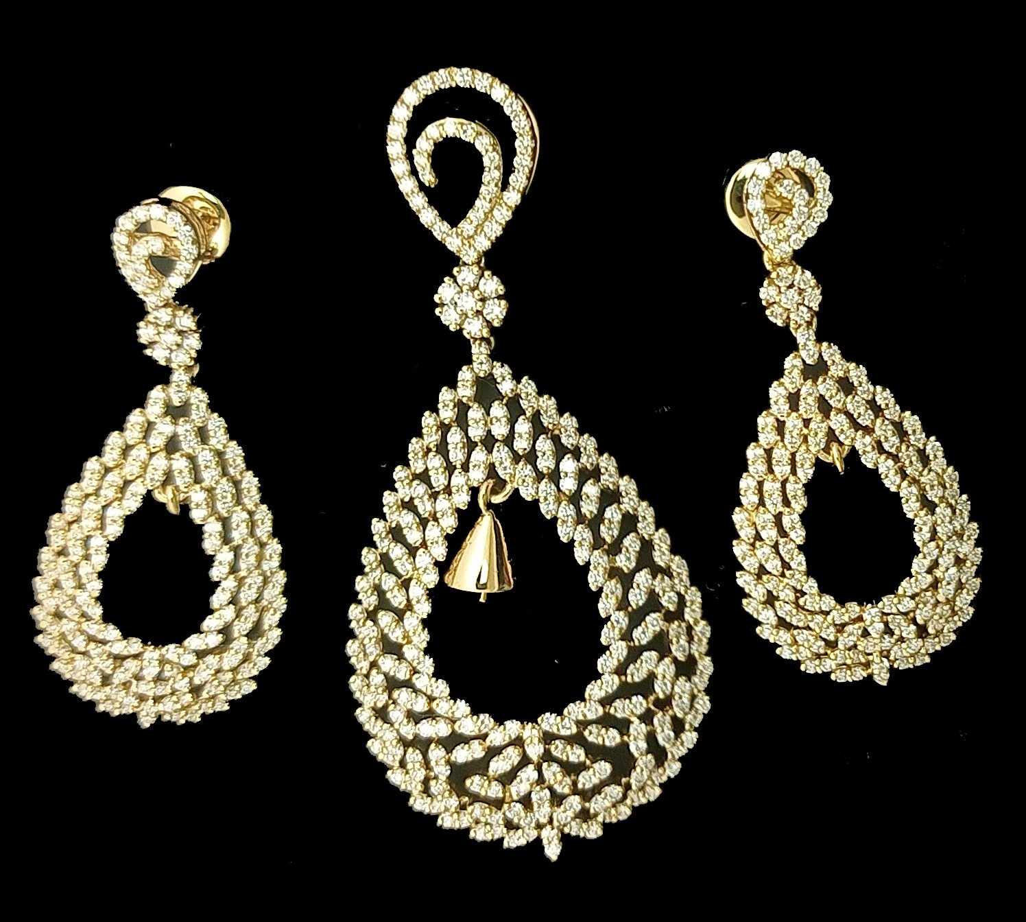 : Article Description :One Pendent Set weighing in total 26.74 gms, studded with 603 Pcs of Diamonds.![]()
