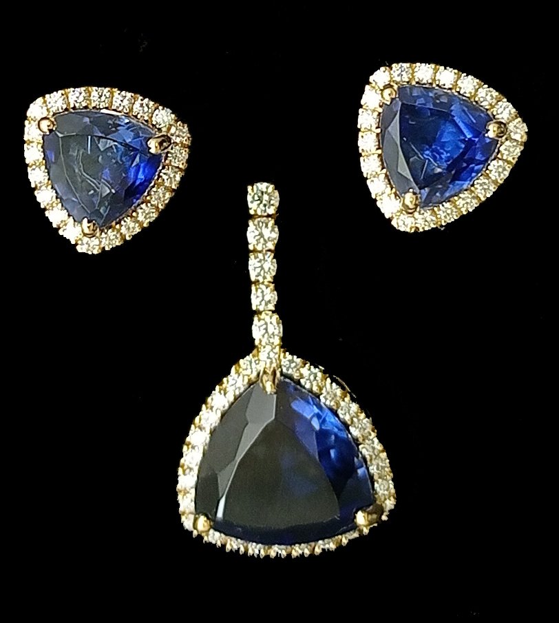 : Article Description :One Pendent Set weighing in total 11.09 gms, studded with 74 Pcs of Diamonds.![]()