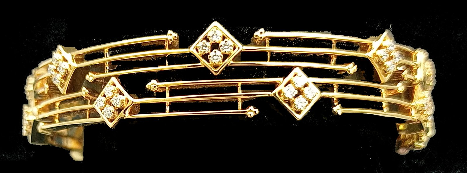 : Article Description :One pair Bangles weighing in total 35.64 gms, studded with 64 Diamonds.![]()