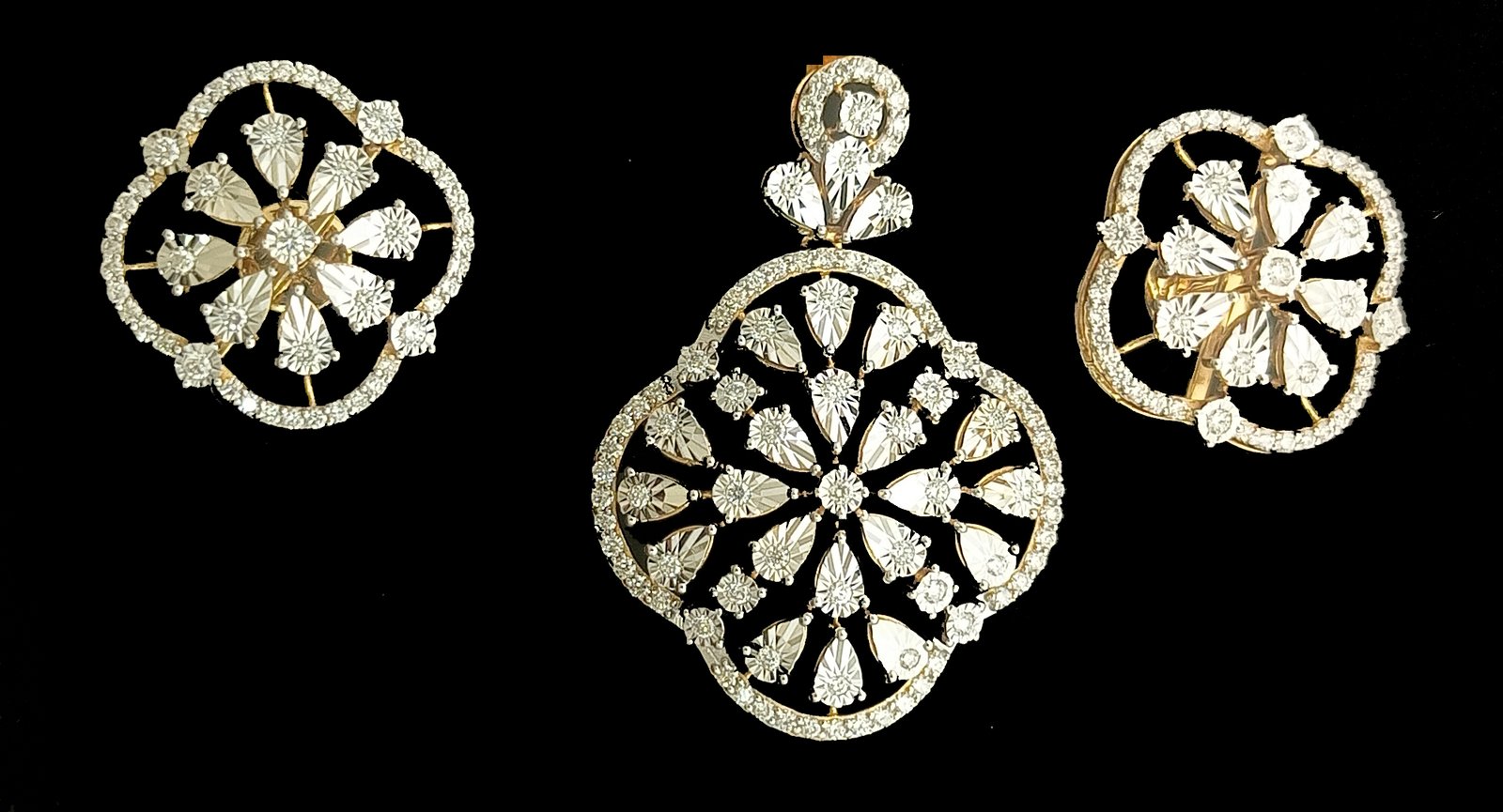 : Article Description :One Pendent Set weighing in 14.08 gms, studded with 184 Pcs Diamonds.![]()