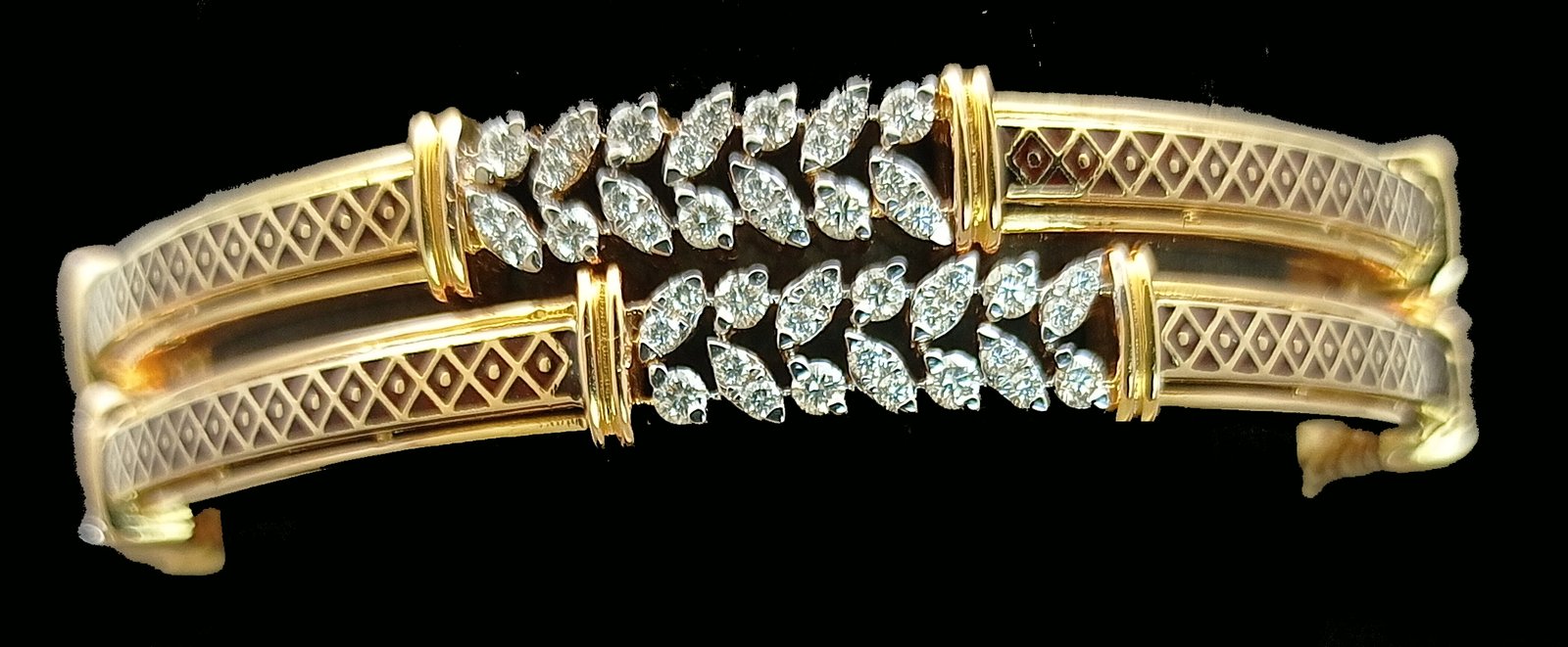 : Article Description :One pair Bangles weighing in total 37.93 gms, studded with 168 Pcs of Diamonds.![]()
