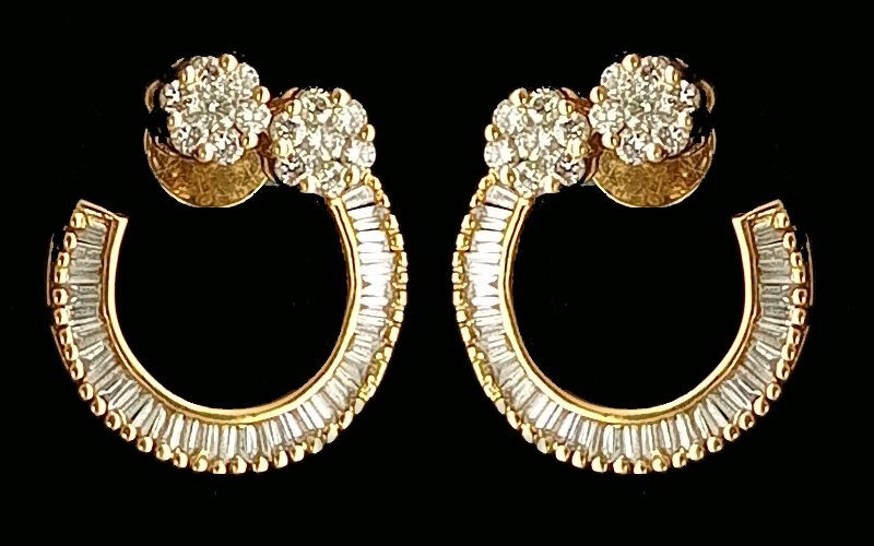 : Article Description :One pair Earring weighing in total 4.19 gms, studded with 92 Pcs of Diamonds.![]()