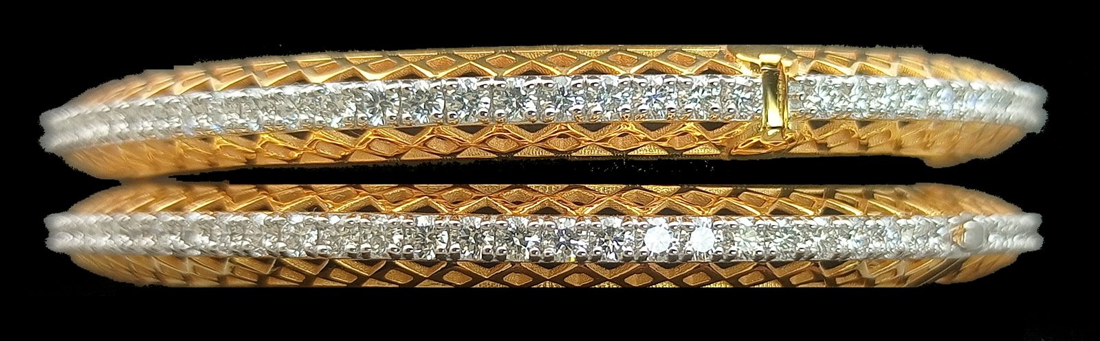 : Article Description :One pair Bangles weighing in total 36.47 gms, studded with 172 Pcs of Diamonds.![]()