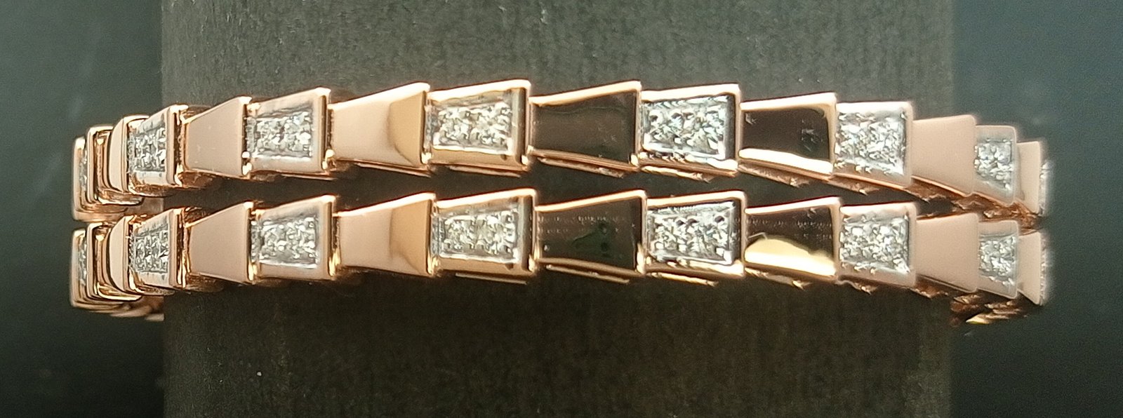 : Article Description :One pair Bangles weighing in total 41.41 gms, studded with 72 Pcs of Diamonds.![]()