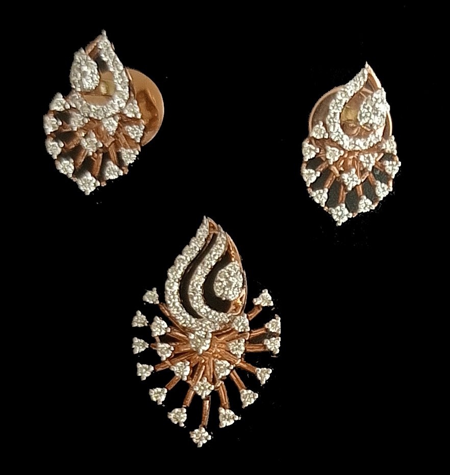 : Article Description :One Pendent Set weighing in total 6.44 gms, studded with 104 Pcs of Diamonds.![]()