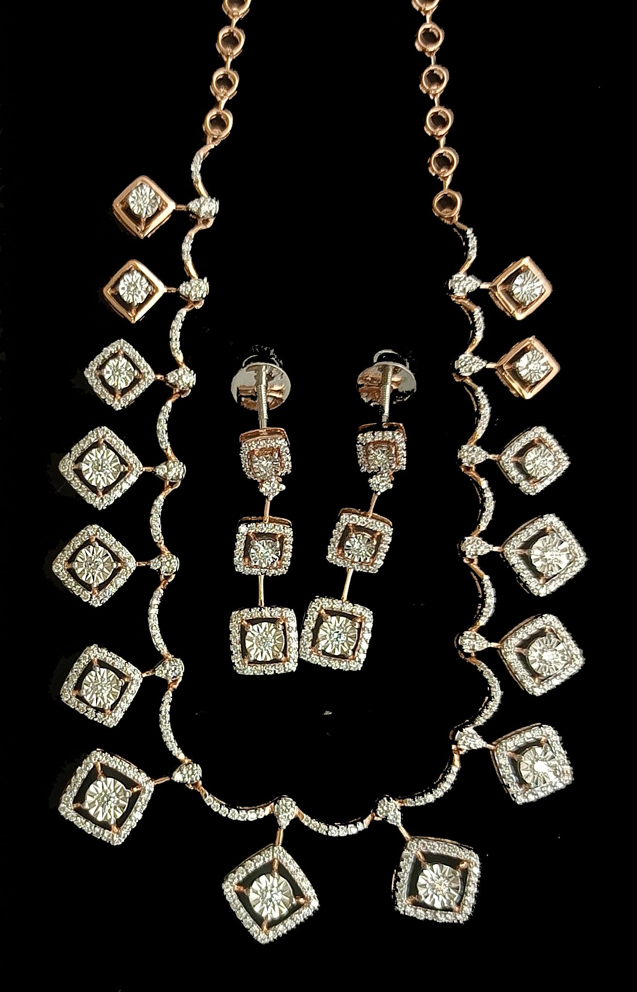 : Article Description :One Necklace Set weighing in total 22.10 gms, studded with 481 Pcs Diamonds.![]()