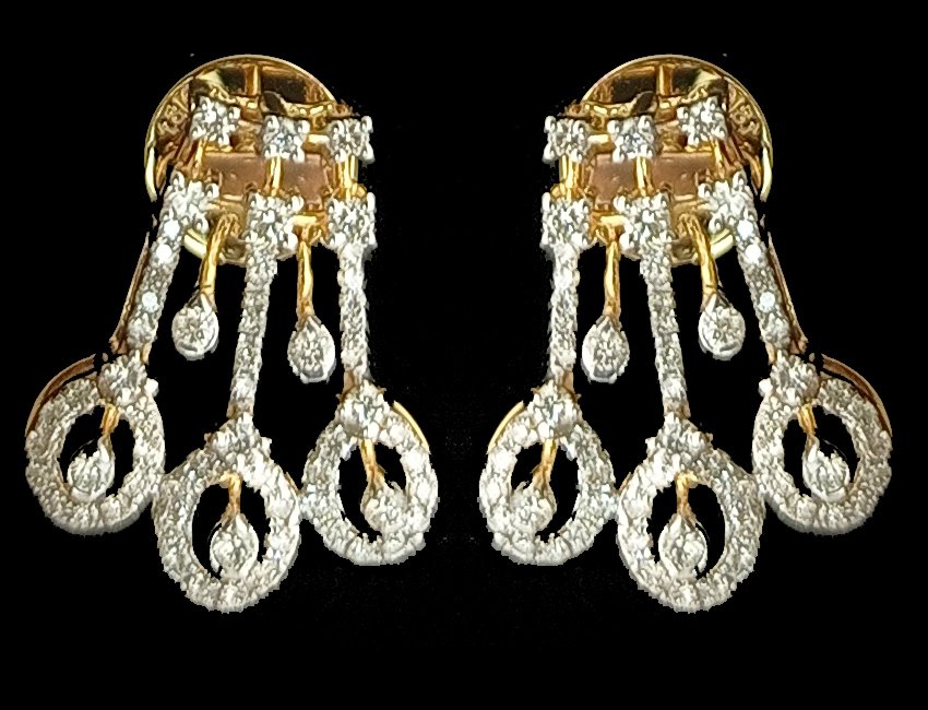 : Article Description :One pair Earring weighing in total 6.61 gms, studded with 120 Pcs Diamonds.![]()