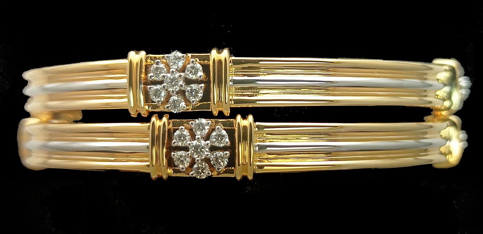 : Article Description :One pair Bangles weighing in total 36.95 gms, studded with 56 Pcs Diamonds.![]()