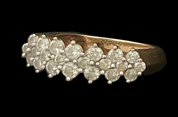 : Article Description :One Ring weighing in total 3.51 gms, studded with 22 Pcs Diamonds.![]()