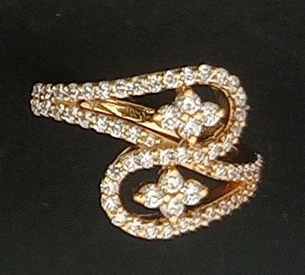 : Article Description :One Ring weighing in total 3.39 gms, studded with 67 Pcs Diamonds.![]()