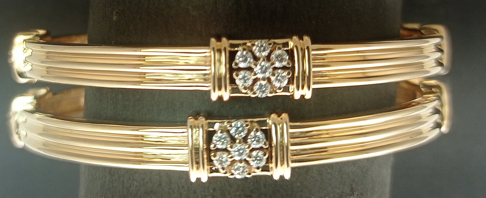 : Article Description :One pair Bangles weighing in total 31.22 gms, studded with 56 Pcs of Diamonds.![]()