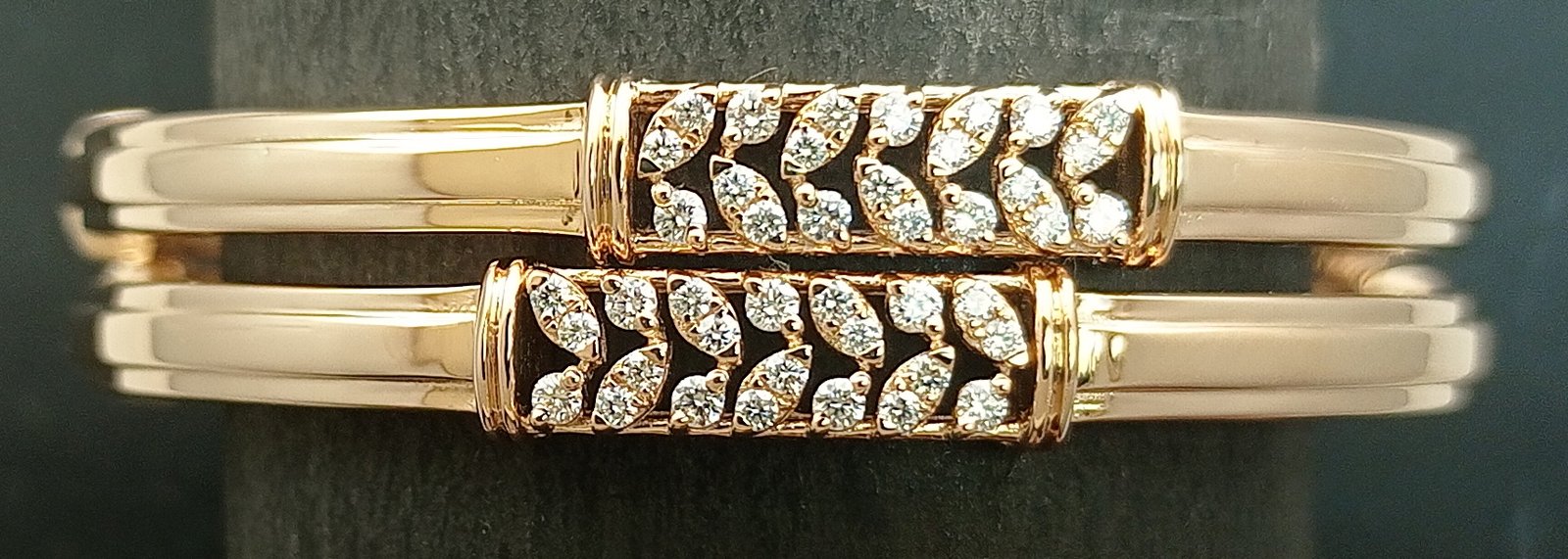 : Article Description :One pair Bangles weighing in total 34.33 gms, studded with 126 Diamonds.![]()