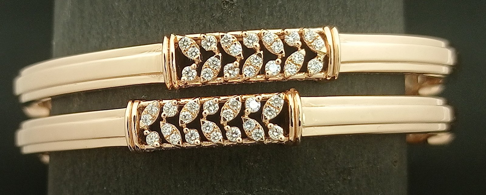: Article Description :One pair Bangles weighing in total 39.08 gms, studded with 126 Diamonds.![]()