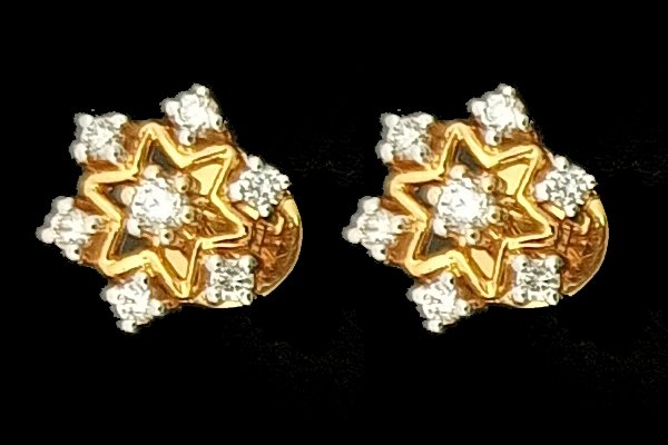 : Article Description :One pair Earring weighing in total 4.70 gms, studded with 14 Diamonds.![]()