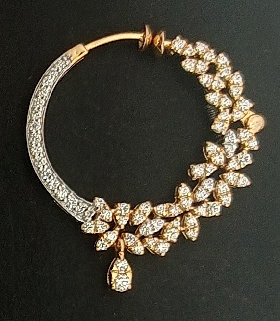 : Article Description :One Nose Pin weighing in total 3.36 gms, studded with 77 Pcs of Diamonds.![]()