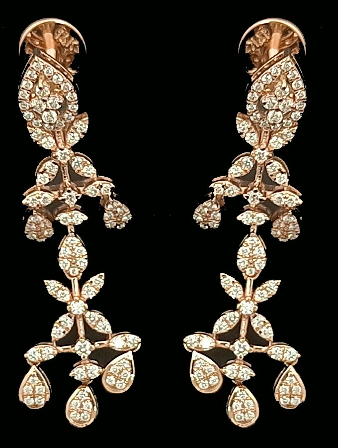 : Article Description :One pair Earring weighing in total 8.38 gms, studded with 168 Pcs of Diamonds.![]()