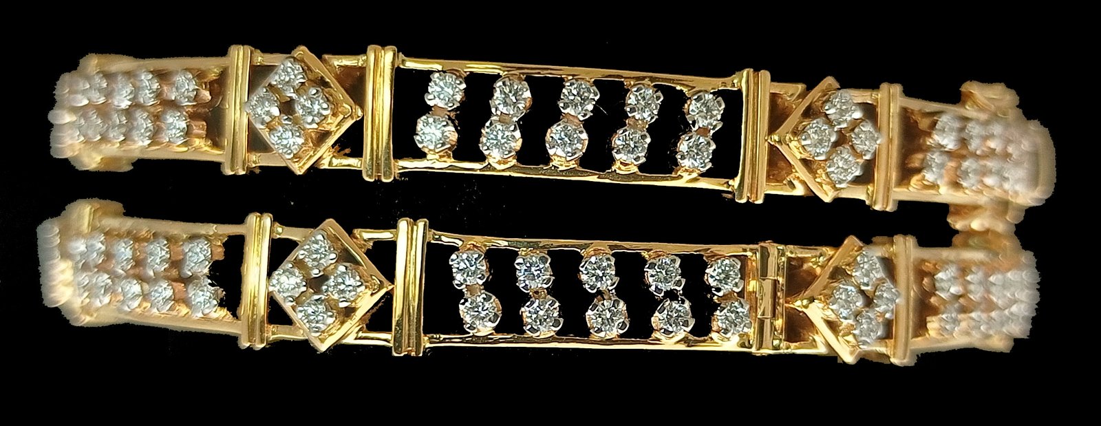 : Article Description :One pair Bangles weighing in total 42.53 gms, studded with 196 Pcs Diamonds.![]()