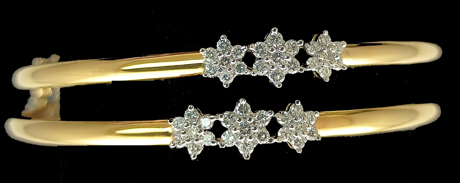 : Article Description :One pair Bangles weighing in total 26.14 gms, studded with 126 Pcs Diamonds.![]()