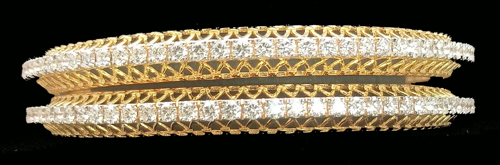 : Article Description :One pair Bangles weighing in total 42.80 gms, studded with 168 Pcs of Diamonds.![]()