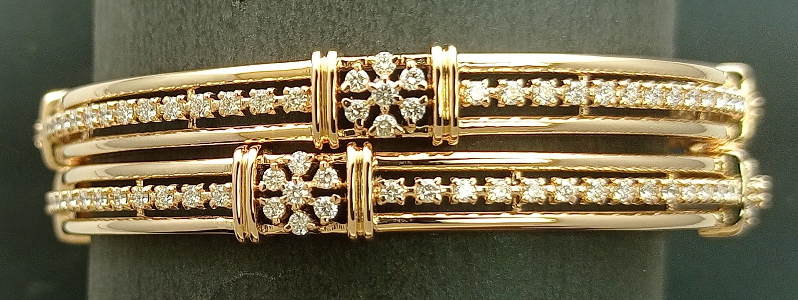 One pair Bangles weighing in total 34.93 gms, studded with 176 Diamonds.