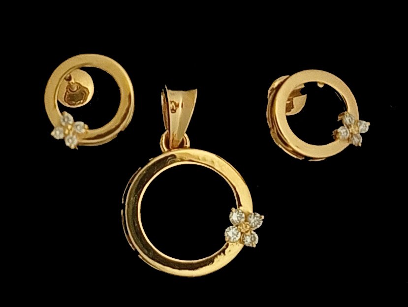 : Article Description :One Pendent Set weighing in total 4.98 gms, studded with 12 Pcs Diamonds.![]()