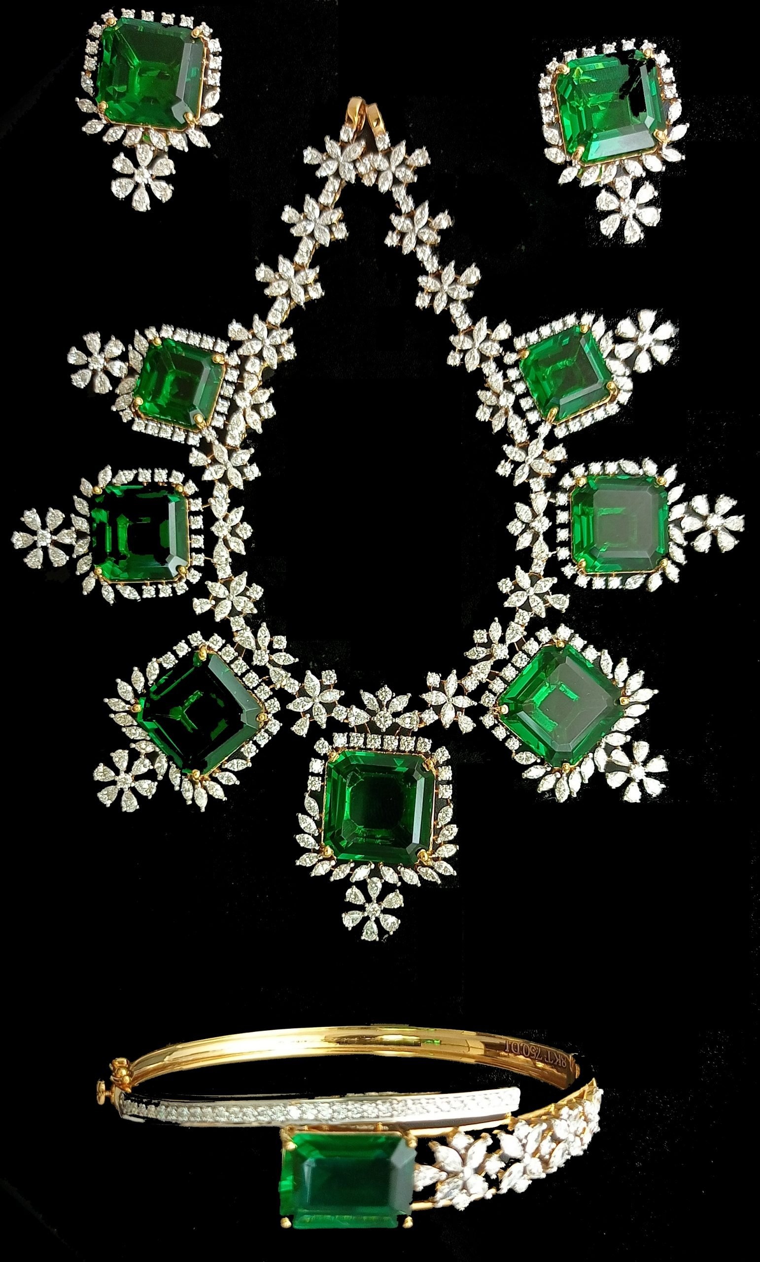 One Necklace Set + Bracelet weighing in total 86.73 gms, studded with 485 Pcs Diamonds.
