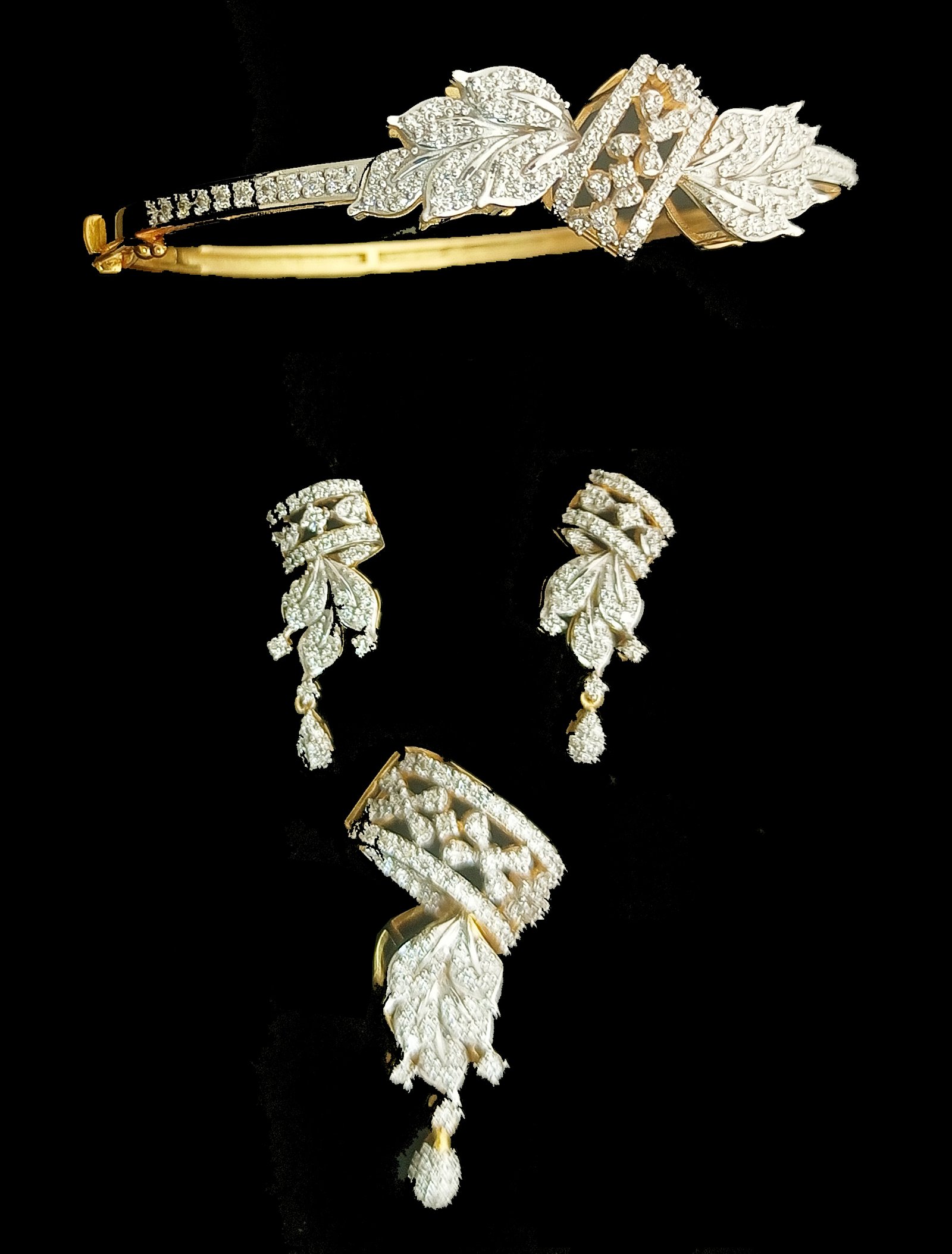 : Article Description :One Pendent Set+Bracelet weighing in total 26.45 gms, studded with 336 Diamonds.![]()