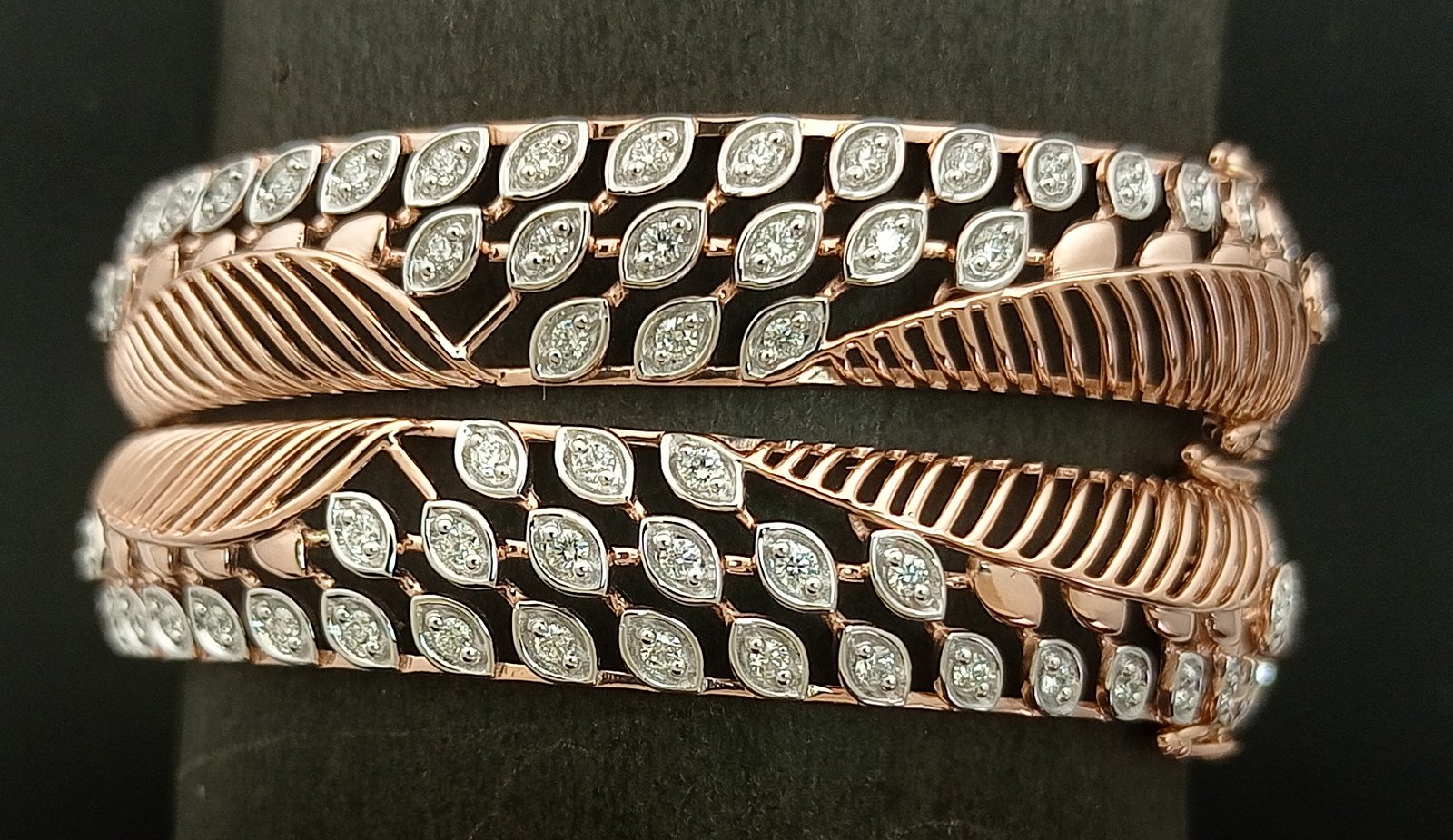 One pair Bangles weighing in total 39.62 gms, studded with 148 Diamonds.