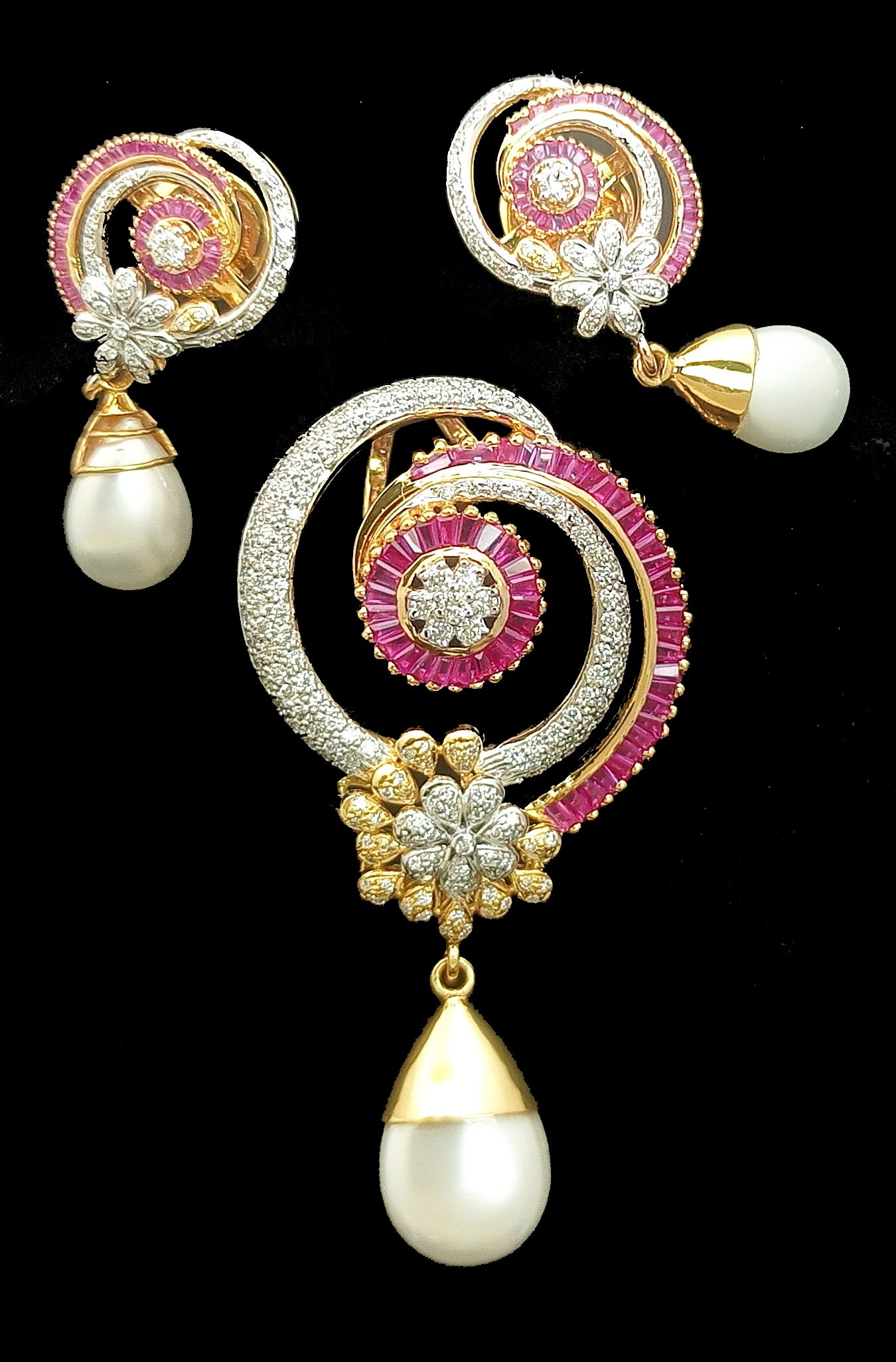 : Article Description :One Pendent Set weighing in total 22.29 gms, studded with 246 Diamonds.![]()