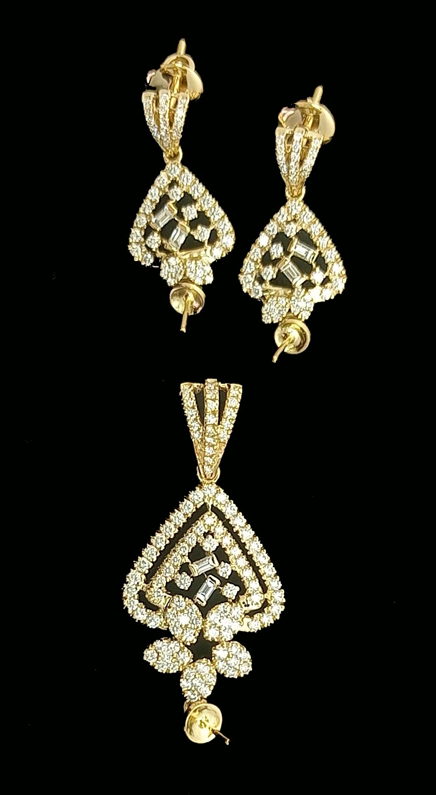 : Article Description :One Pendent Set weighing in total 12.20 gms, studded with 204 Pcs Diamonds.![]()