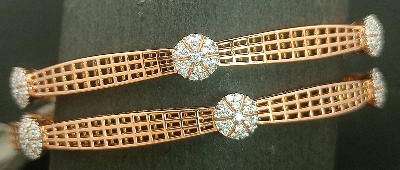 : Article Description :One pair Bangles weighing in total 29.22 gms, studded with 228 Pcs Diamonds.![]()