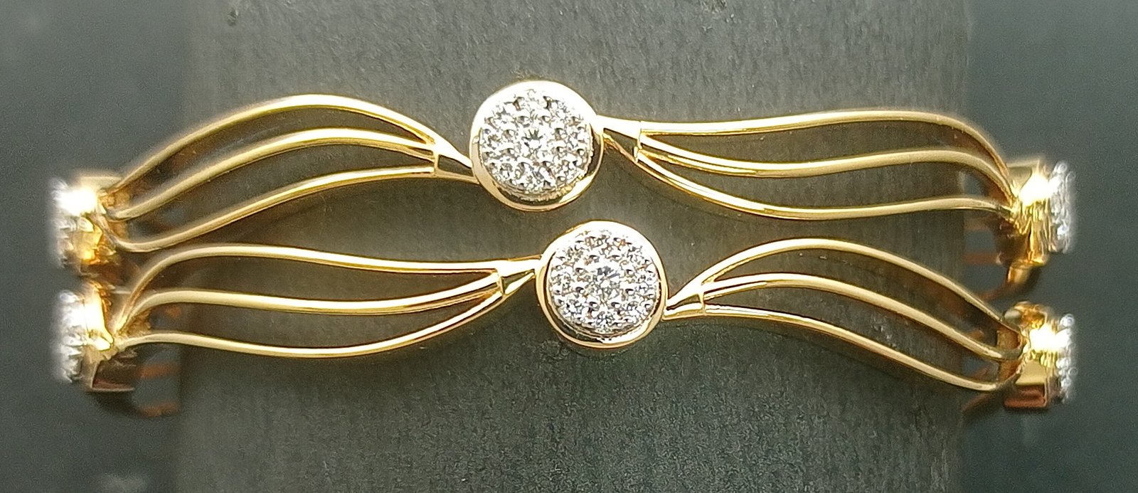 One pair Bangles weighing in total 31.11 gms, studded with 90 Pcs Diamonds.