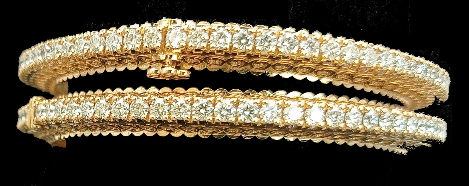 : Article Description :One Bangles weighing in total 45.08 gms, studded with 148 pcs Diamonds.![]()