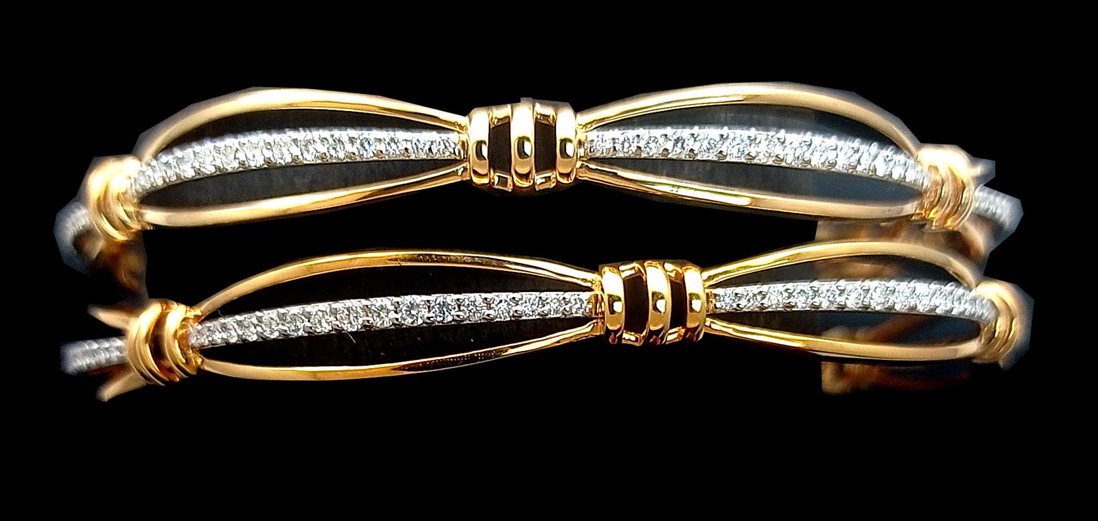 : Article Description :One pair Bangles weighing in total 40.62 gms, studded with 204 Diamonds.![]()