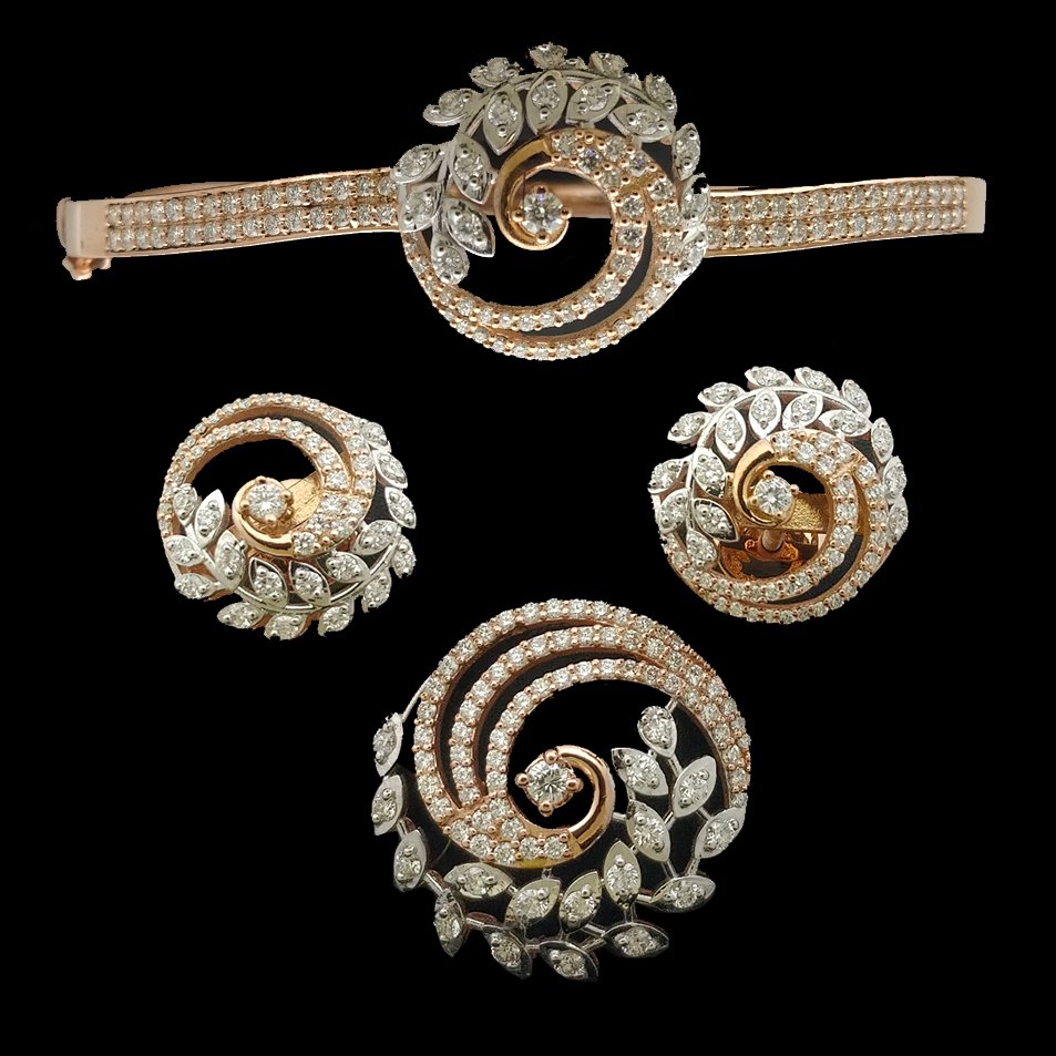 : Article Description :One Pendant set with Bracelet weighing in total 26.20 gms, studded with 304 Pcs of Diamonds.![]()