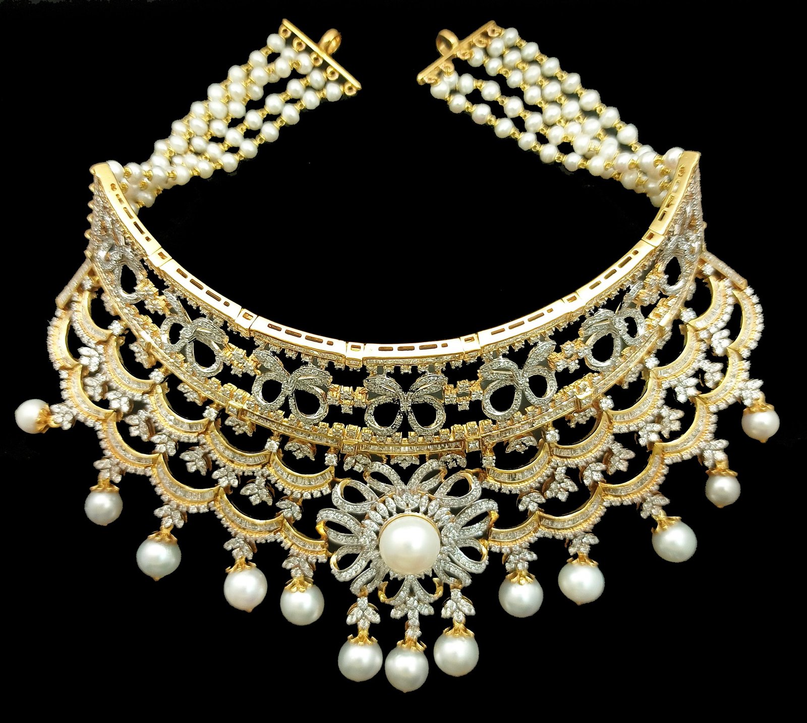 One Necklace weighing in total 123.36 gms, studded with 1639 Diamonds.