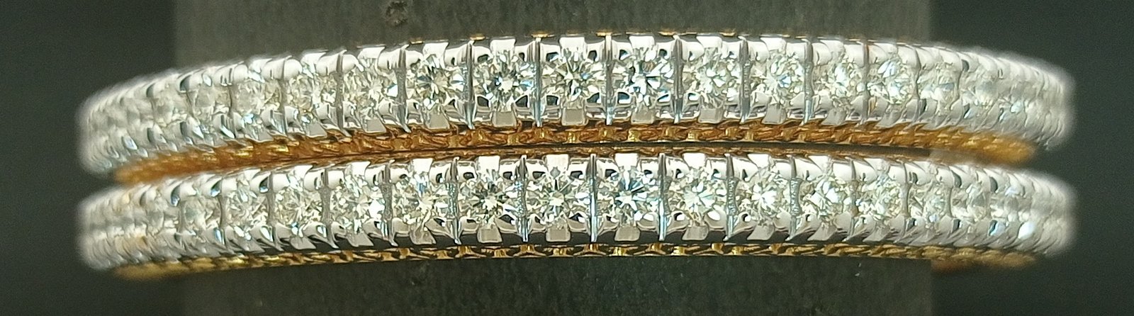 : Article Description :One pair Bangles weighing in total 43.97 gms, studded with 110 Pcs Diamonds.![]()